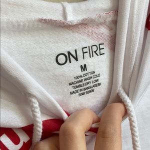 A hoodie with a queen pattern all over it and a raw cut hem. Never worn before, small stain on front as pictured. Material is like a T-shirt and is really lightweight and soft! Super comfy :)