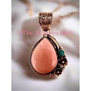Queen Pink Conch & Turquoise Teardrop | Pendant | Sterling Silver 1.6” Long