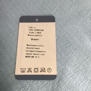Queen sized sheet set in light blue. Natural and comfortable design. Tag came with item but was unattached. Unknown material. Set comes with fitted sheet, flat sheet, and two pillowcases. Opened for picture, never used.