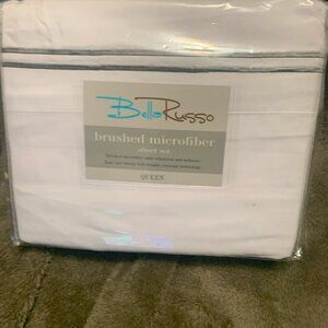 Queen Sheet Set Brand New 4-Piece Bella Russo Brushed Microfiber White Gray Trim. Bella Russo. White. Sheets.