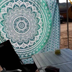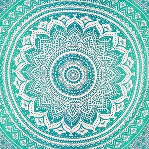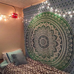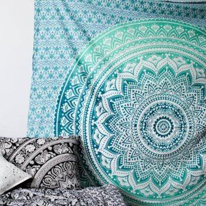 Queen Size Tapestry & Two Bed Pillow Covers SET Green Teal Blue NEW
