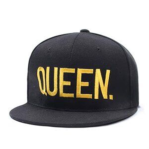 Queen. Snapback Hat Classic Flat Brim Baseball Cap Black, Yellow Letters, King