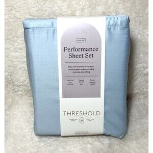 Queen Solid Performance 400 Thread Count Sheet Set Light Blue - Threshold
