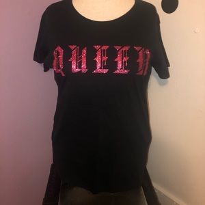 Black T-shirt with hot pink glitter vinyl. Made by yours truly! Price is firm ๐