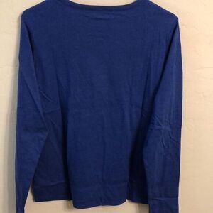Queen Women’s T-shirt Large blue metallic lettering long sleeve NWT