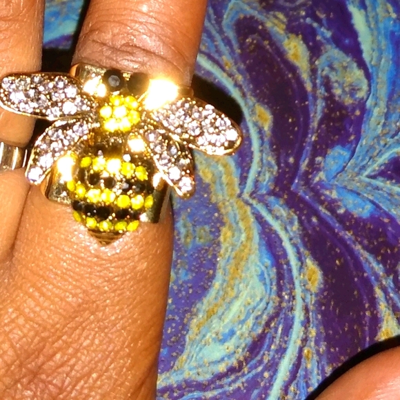 Queen bee ring black and yellow rhinestones throughout