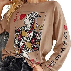 Queen of Hearts Playing Card Graphic Round Neck Sweatshirt