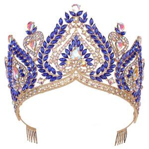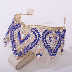 Queen of Spades, Blue Crystal Crown, Gold Comb Crown, Pageant Crown, XL Size