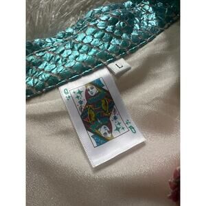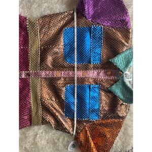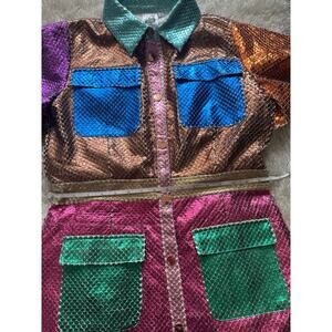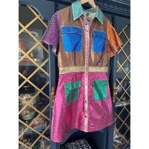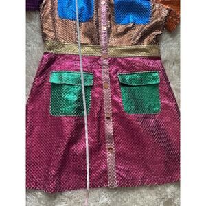 Queen of Sparkles Metallic Colorblock Dress Button Front short sleeve Large