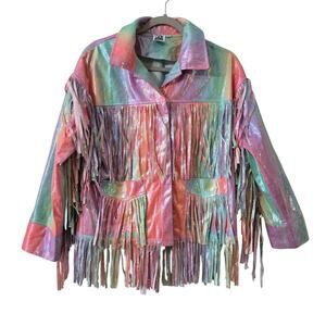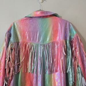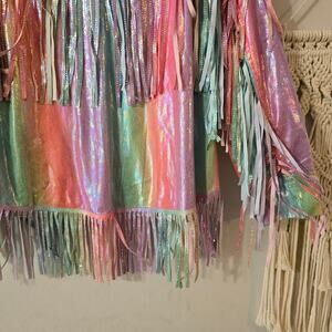 Queen of Sparkles Rainbow Fringe Blazer Cowgirl Festival Sparkles Size S Small