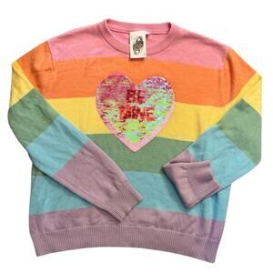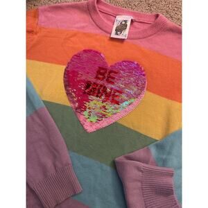 Queen of Sparkles Sequin Be Mine Heart Striped Sweater Rainbow Kids L / Adult XS