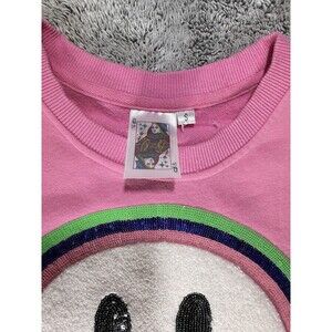 Cozy and fun Queen of Sparkles sweatshirt in pink with Wednesday smiley design. Womens size Small. Excellent conditionvery soft and warm with no flaws noted. Please note: there is no orangish hue or stain on the sweatshirt. Any discoloration you may see in the photos is due to camera and lighting only. A great statement piece to add sparkle to your casual style!