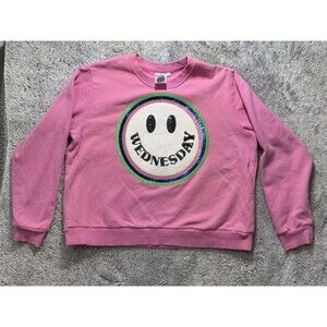Queen of Sparkles Wednesday Smiley Sweatshirt Size S Pink