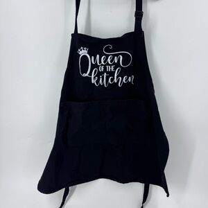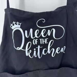 Step into your culinary domain with this elegant black apron, featuring a charming 'Queen Kitchen' design. Crafted for both style and functionality, it offers a comfortable fit with adjustable neck and waist straps. Ideal for any kitchen enthusiast, this apron adds a touch of personality to your cooking experience.