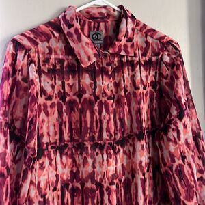 Queen Collection Womens S Purple Abstract Button Front Collar 3/4 Sleeve