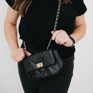 Slay the city streets in style with this Queenie Quilted Crossbody Bag! This vegan leather bag features trendy quilting and a gorgeous chain strap. Wear the strap long as a crossbody, or take the chain out from the bag and pull it up to create a double chain shoulder strap! Keep your items secure with the locks on the exterior, and a zipper pocket on the interior. Look classy, sassy, and chic all day long with this new accessory!