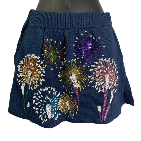 Queen of Sparkles Navy Blue Fireworks Knit Skirt Fourth of July Small