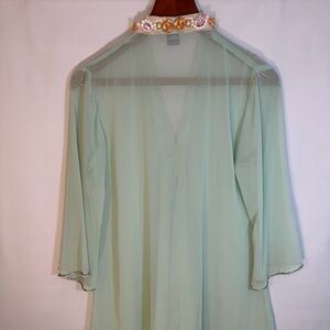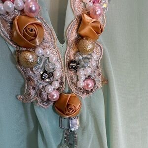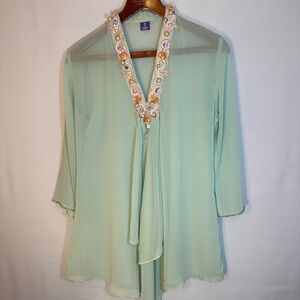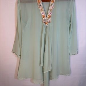 Queenora Womens Blouse Kaftan Lime Green Embedded Beads Ribbon Tunic Tunic Sz L