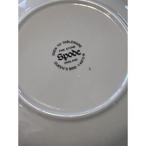 I have 12 Spode salad plates in the Queens Bird pattern available! these are on Replacements for $49.99 each. There are several different back stamps on these, since these were manufactured from 1962 until 1993 and so when purchasing please TELL ME WHICH YOU PREFER! There is one of the plate from the red back stamp group that is slightly faded. See photos. Listing if for one plate. Discount for multiple purchases.