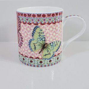 This fine bone China Mug is very colorful with Pink, Yellow, Blue, Lime, Burgundy, and White.