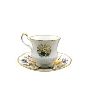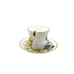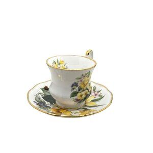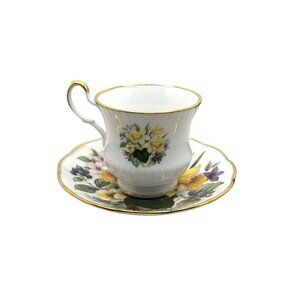 Queens Fine Bone China Floral Tea Cup & Saucer Set With Gold Trim