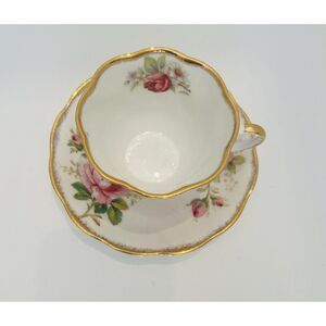Matching Saucer Pink & White Cabbage Roses Gold Trim 1960s