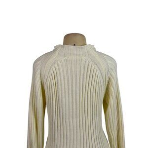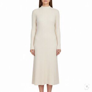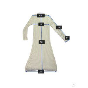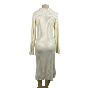 Queens Street Womens Cream Ribbed Knit Long Sleeve Midi Sweater Dress Size OS
