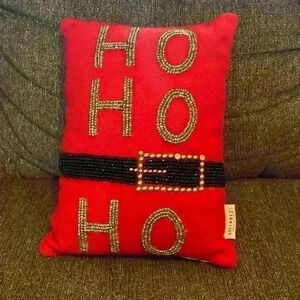 Queenwest Trading Co. “Ho Ho Ho” Beaded Santa/Holiday Decorative Pillow