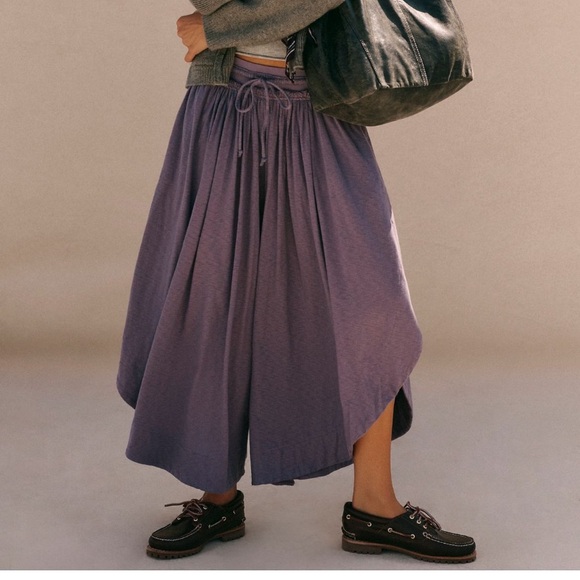 Stylish purple wide-leg culottes. Perfect for casual outings.