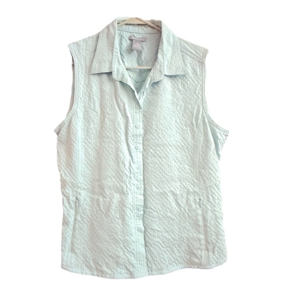 Quest Green Collar Button Down Top Size XL