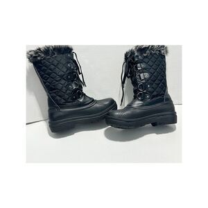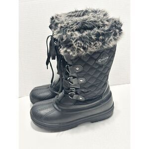 Quest Powder Winter Snow Boots Faux Fur Collar 3M Insulated Rubber Boots Black 7