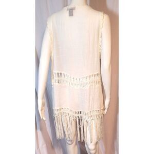 Question Knit Open Front Boho Vest With Fringed Hem - Size L