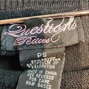 Questions Black Off the Shoulder Sweater. Good pre owned condition. laid flat app 16 inches chest, 27 length. Rayon polyester. Petites Small . S.
