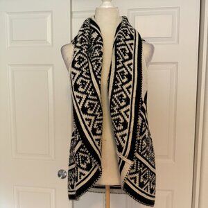 Questions Black & White Patterned Waterfall Sleeveless Cardigan Vest