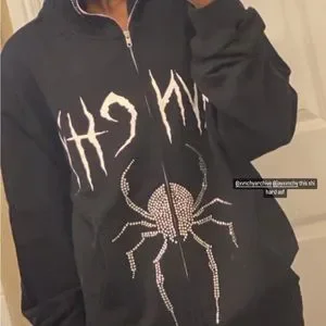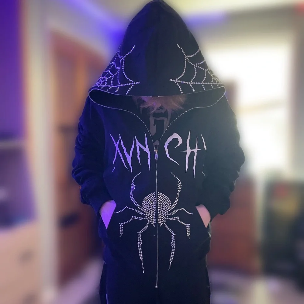 Terry cotton hoodie, full zip, rhinestones and vinyl print on the words