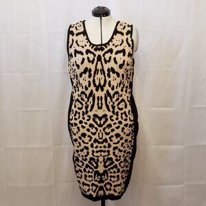 Questions Tan & Black Leopard Print Pullover Sleeveless Hourglass Dress, Size 2X