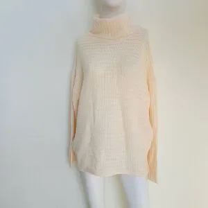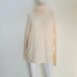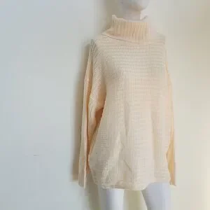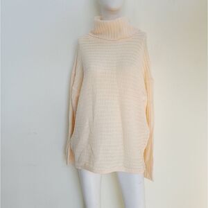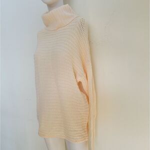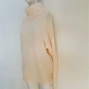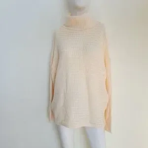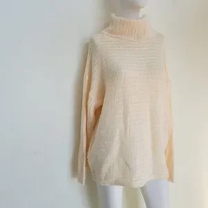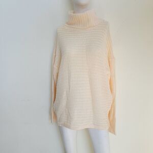 Questions womens Knit cream beige Turtleneck Pullover Sweater Size L Pit to pit 23in. Stretch to 30in 25in. L. NWOT