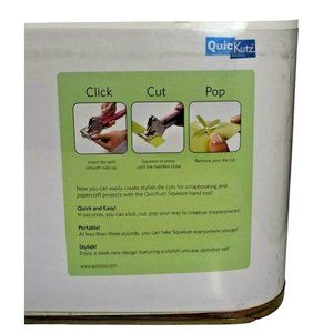 This QuicKutz Squeeze Pink Personal Die-Cutting System and Moxie Unicase Alphabet Set is perfect for any craft enthusiast. Its compact design and easy-use mechanism make it a must-have tool for every project. • Features QuicKutz's innovative die-cutting technology • Comes with Moxie Unicase Alphabet Set • Compact and portable design • Easy to use for all craft levels Now you can easily create stylish die cuts for scrapbooking and papercraft projects with the QuicKutz Squeeze hand tool! Quick and Easy - In seconds, you can click, cut, pop your way to creative masterpieces Portable - At less that three pounds, you can take Squeeze everywhere you go Stylish - Enjoy a sleek new design featuring a stylish unicase alphabet set Includes: Squeeze Hand Tool ~ Moxie Unicase Alphabet Set ~ Cradle ~ Instruction Guide Please see pictures for included items Condition: Pre-Owned Like New Opened and Damaged Box. There is a top piece of the packaging that is missing. The items inside are still in new condition. Please see pictures.