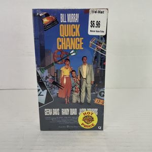 This is a brand new, sealed VHS tape of the comedy movie "Quick Change" starring Bill Murray. The movie is in NTSC signal standard and has English language audio. The movie is rated R and falls under the adventure sub-genre. The movie is directed by Howard Franklin and Bill Murray, who also stars as the leading role. The tape is of the widescreen edition and produced by Warner Home Video. This VHS tape is perfect for fans of Bill Murray and collectors of movies and TV shows on VHS tapes.
