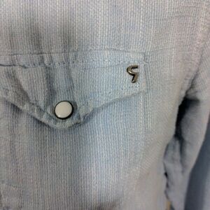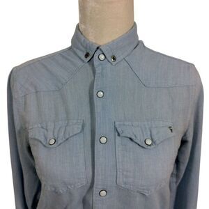 Quick Men Womans Shirt Pearl Snap Button Long Sleeve Blue Western