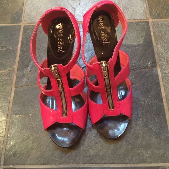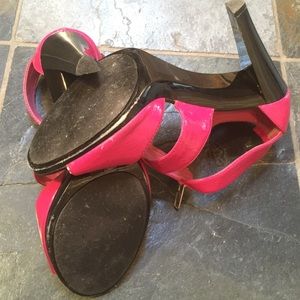 Fancy!! Lightly used hot pink zipper up hollow out heels! Only available until 11/27