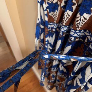 This is a loose dress - wraparound with strings pictured (and there is a snap at the chest in front); Cute as a dress or a beach cover; Cotton material is very very soft.