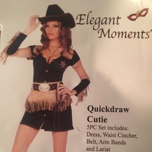 Set includes: dress, waist cincher, belt, arm bands, and lariat. Brand new!