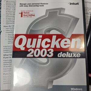 Quicken 2003 Deluxe software CD-ROM disc program Intuit Windows 95/98/2000/Me/XP