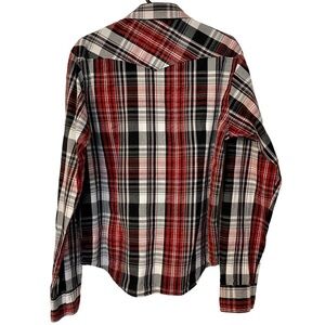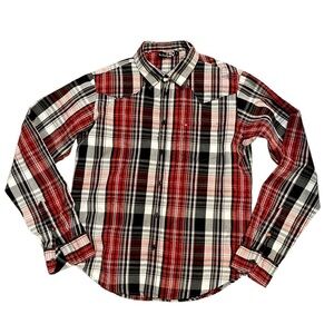 Quicksilver Black, Red, and White Madras Plaid Western Long Sleeve Button Down Shirt. Size Large