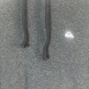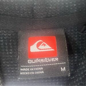 Quicksilver Black Texured Henley Hoodie, Size M, Drawstring Hood, Cuffed Sleeves