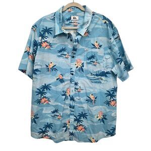 Quicksilver Blue Tropical Hawaiian Button Down Shirt Mens Size XXL