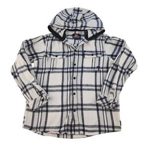 Quicksilver Flannel Shirt Kids XL 20 Plaid White Navy Blue Button Up Hoodie