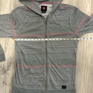 Quicksilver Full Zip Lightweight Hoodie Sweatshirt Gray Stripe Men’s Size M