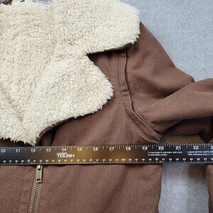 Quicksilver Jacket Womens Size Large Brown Sherpa Lined Faux Fur Moto QSW